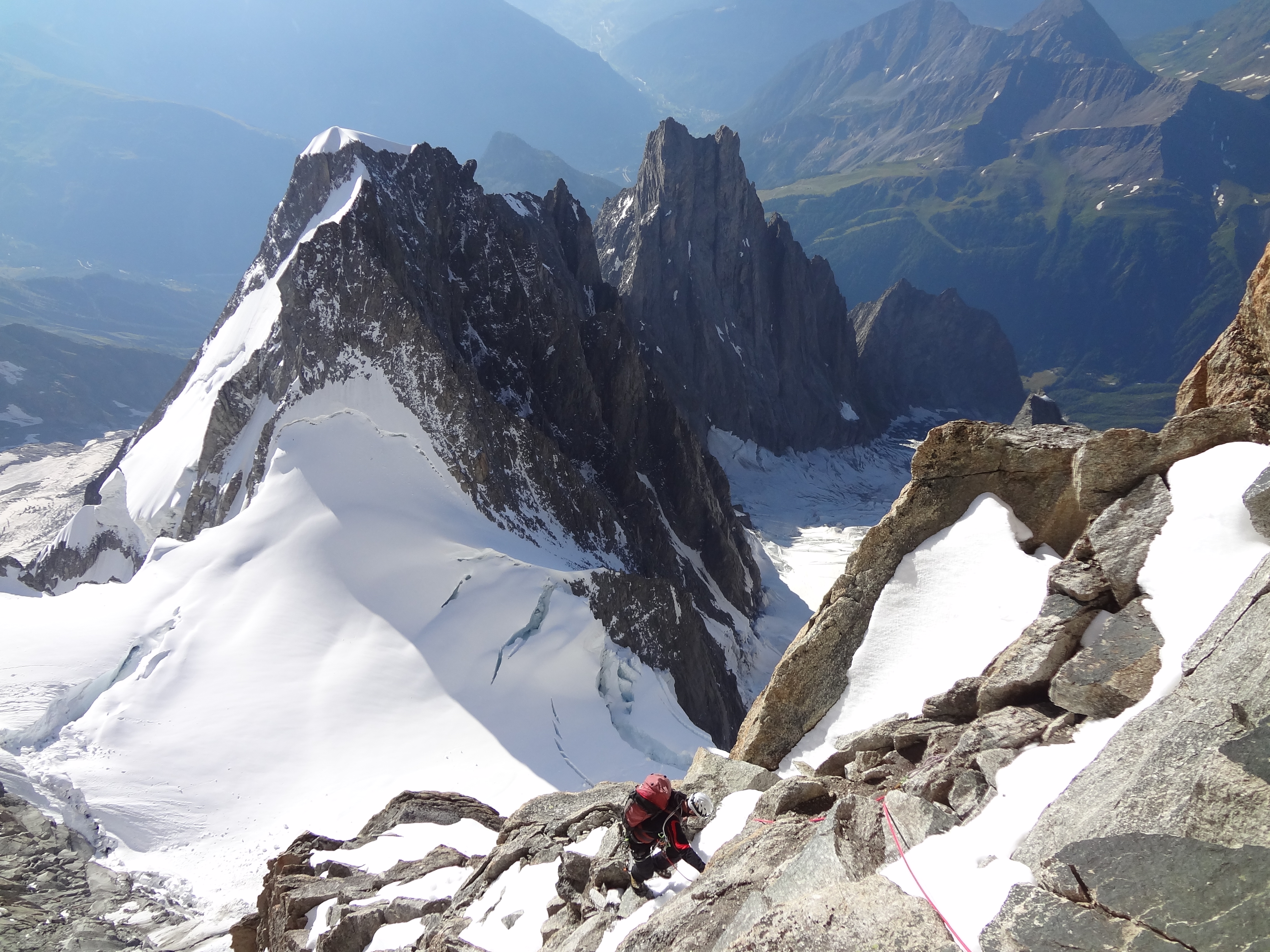 Terrain typique du pilier d’approche du Fréney au-dessus de la Blanche et de la Noire de Peuterey